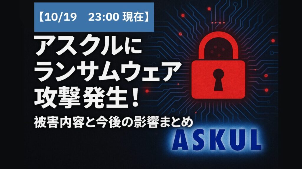 2025年10月19日、オフィス用品通販大手のアスクル株式会社が深刻なランサムウェア攻撃を受けたことが明らかになりました。この記事では、アスクルに発生したランサム攻撃の詳細、被害状況、顧客や取引先への影響、そして今後の対応方針について詳しく解説します。